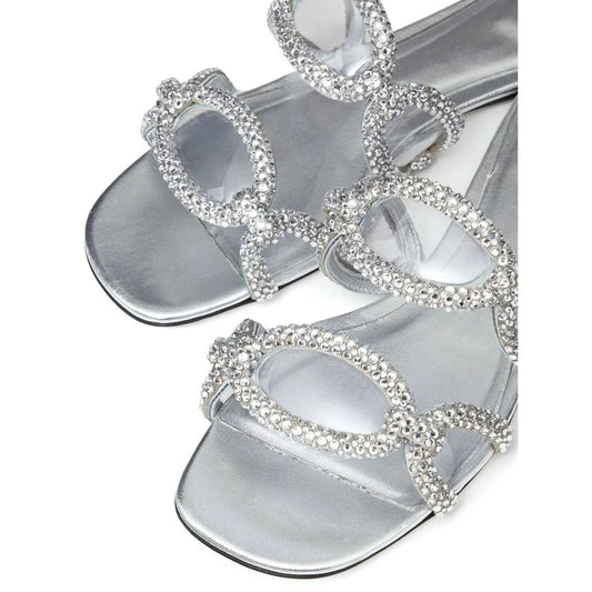 Valentino Garavani Silver Chain 1967 Crystal Slip On Slide Flat Sandal