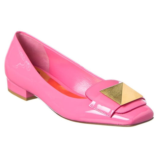 Valentino Garavani Pink One Stud Flat Patent Leather Ballerina Shoes