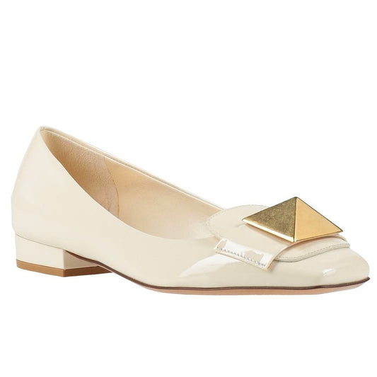 Valentino Garavani Ivory One Stud Flat Patent Leather Ballerina Shoes