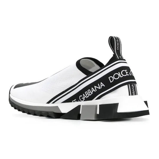 Dolce & Gabbana Sorrento Logo Print Stretch Knit Slip-On Sneakers White Black