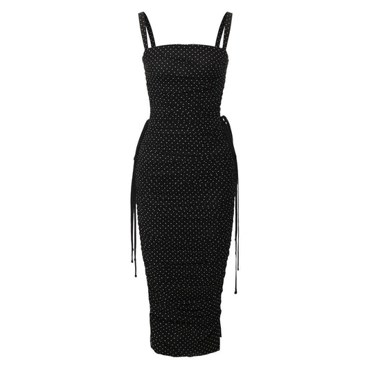 Dolce & Gabbana Black Lace-up Polka Dot Georgette Midi Dress S 40