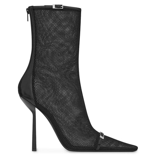 Saint Laurent Oxalis Mesh Pointed Toe Ankle Boots Booties Black