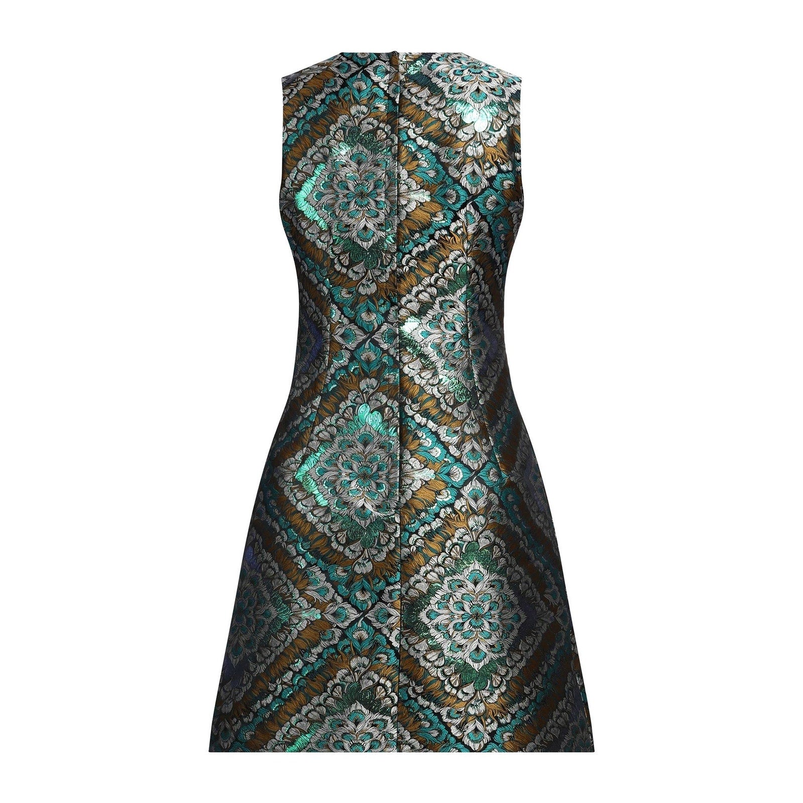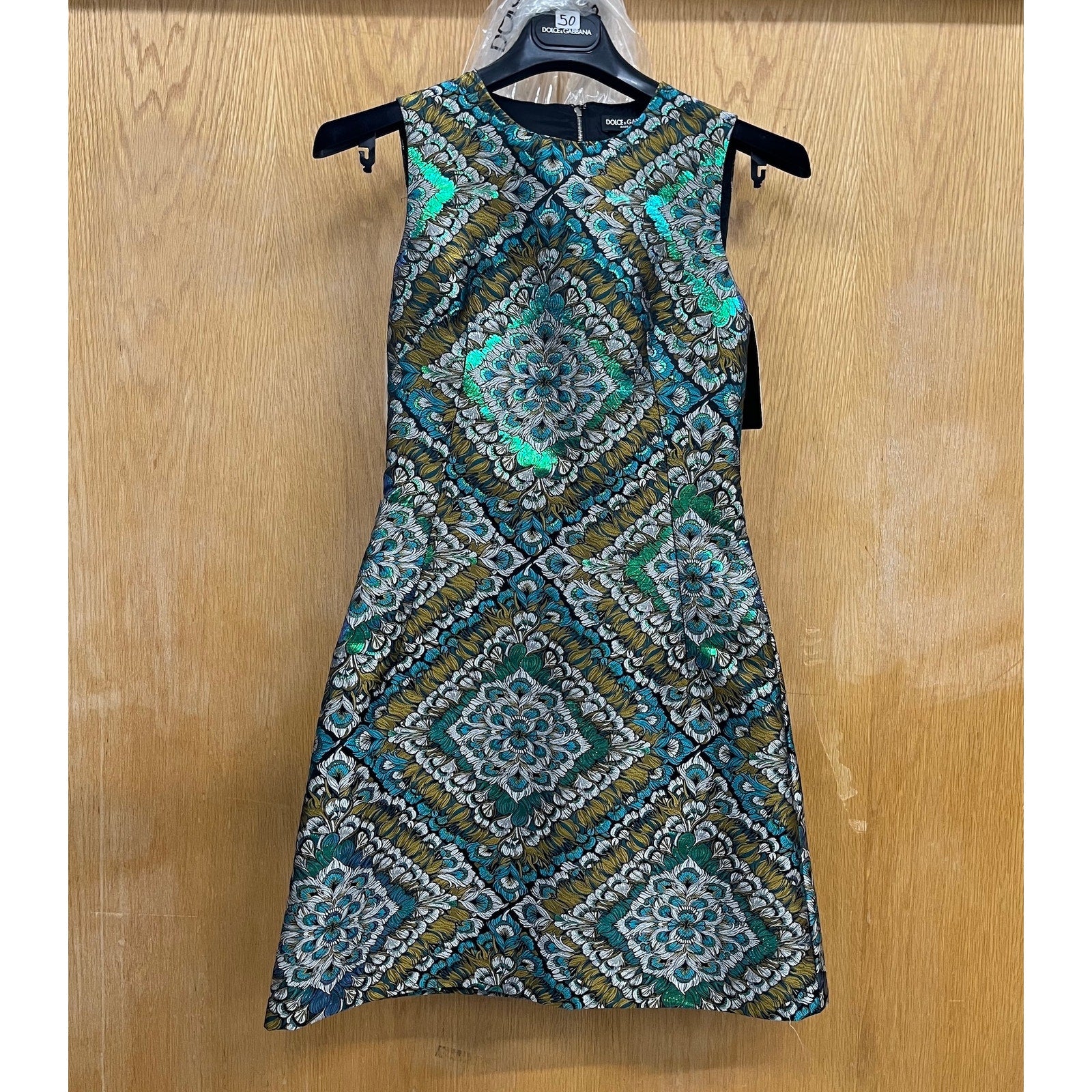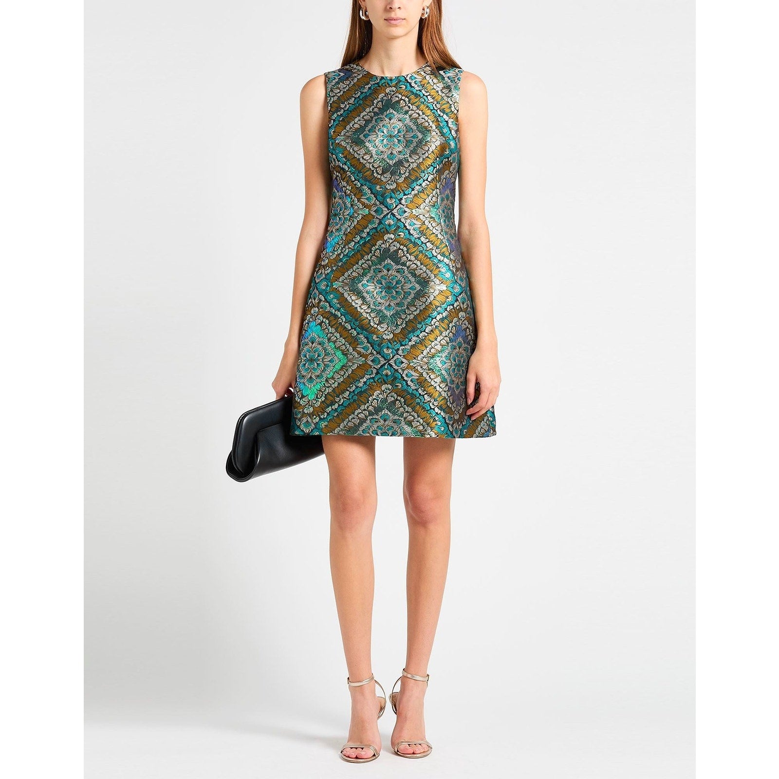 DOLCE & GABBANA Green Metallic Jacquard Sleeveless Mini Dress 42 M