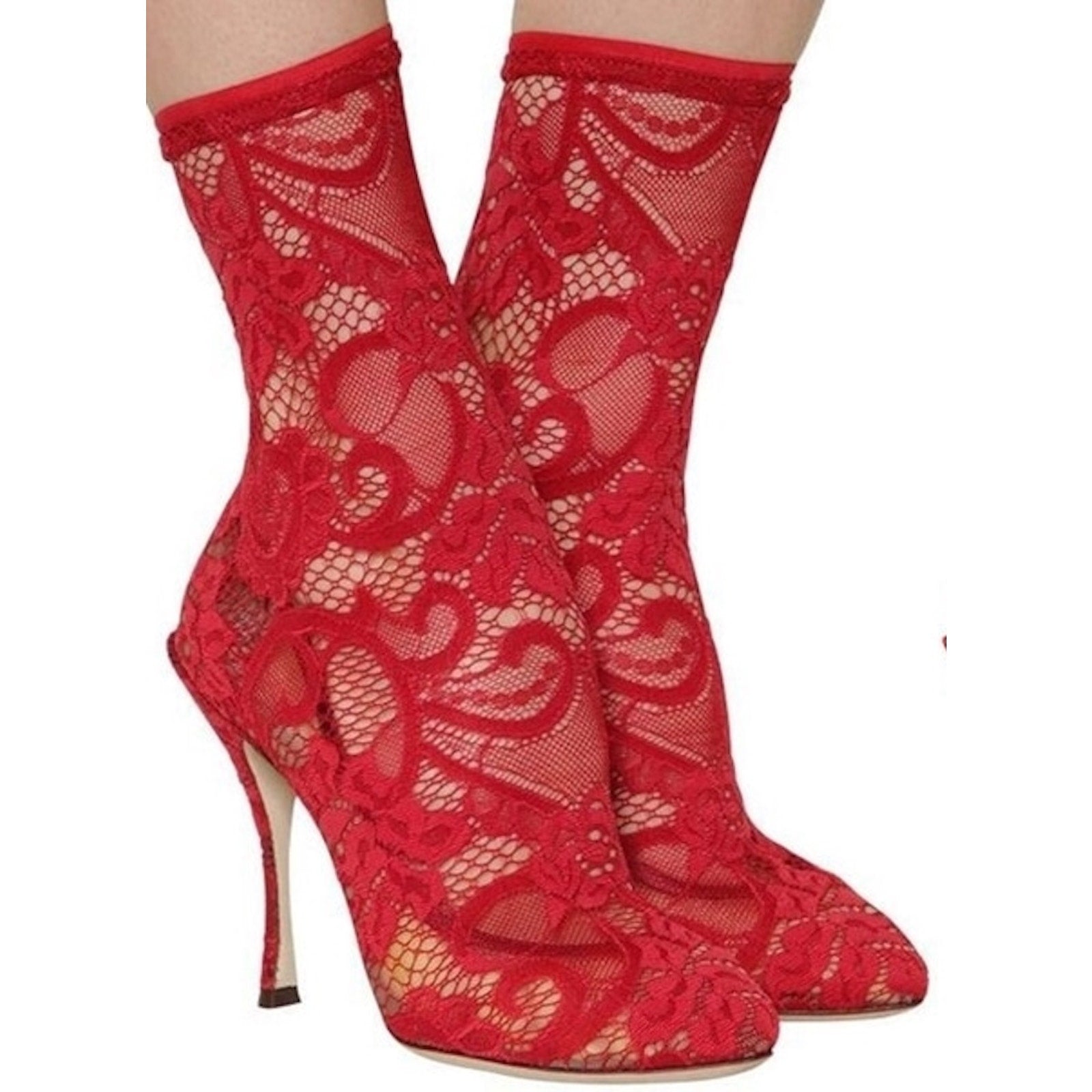 Dolce & Gabbana Stretch Lace Sock Ankle Boots Booties Red