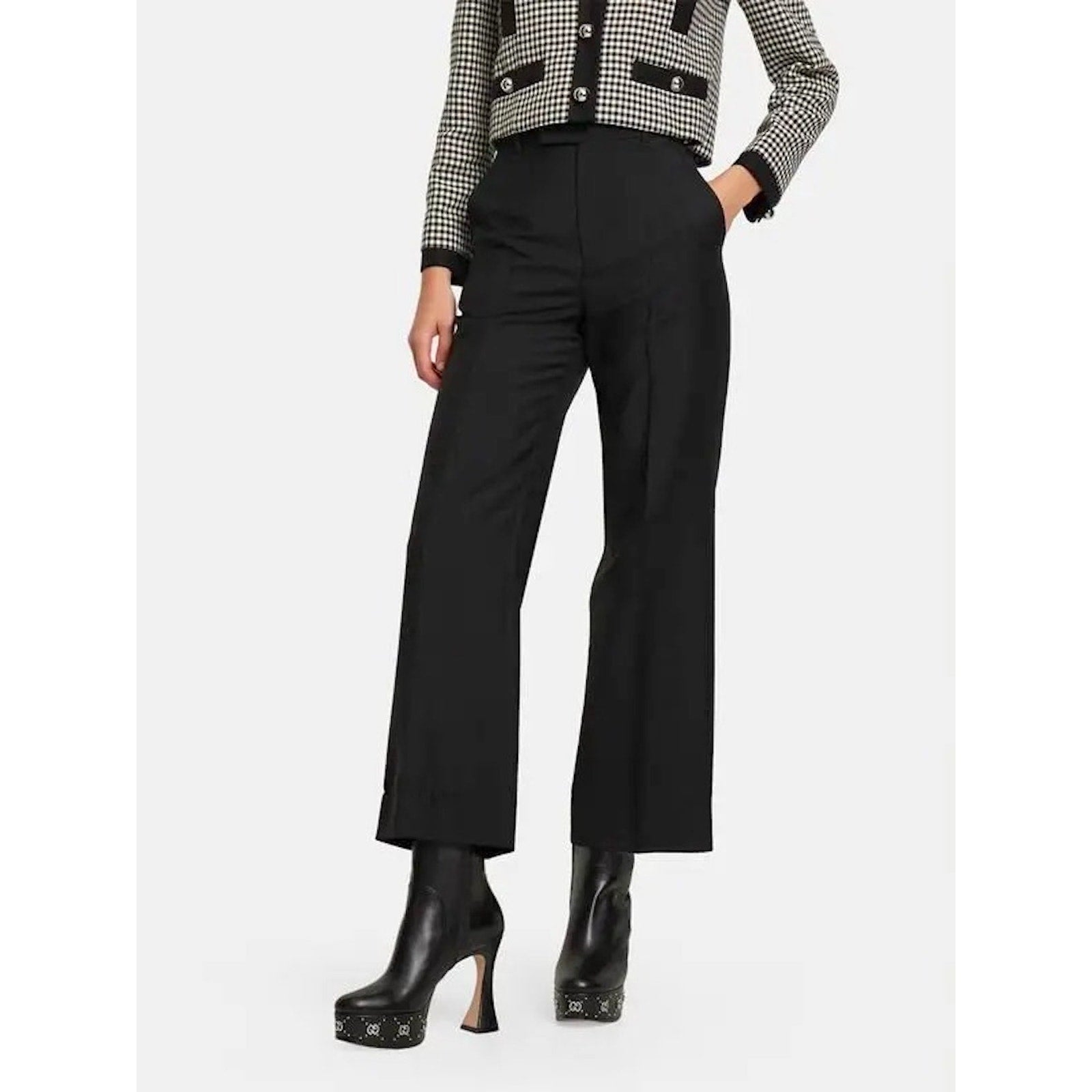 Gucci Janaya 115 Black Leather GG Stud Platform Booties