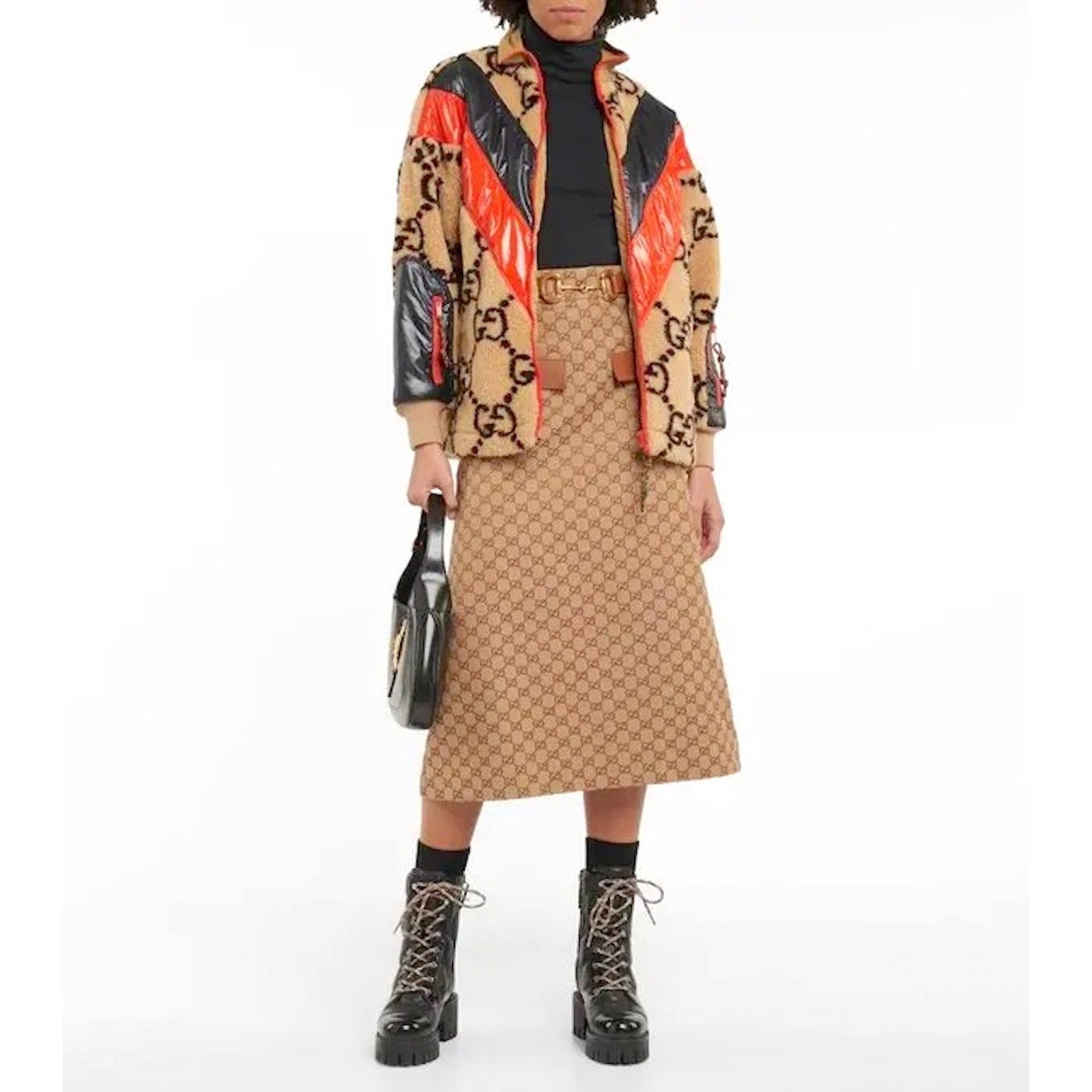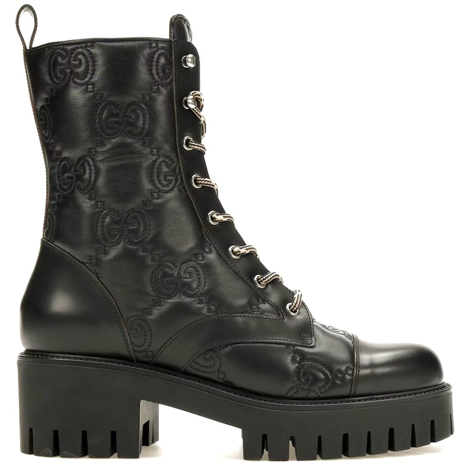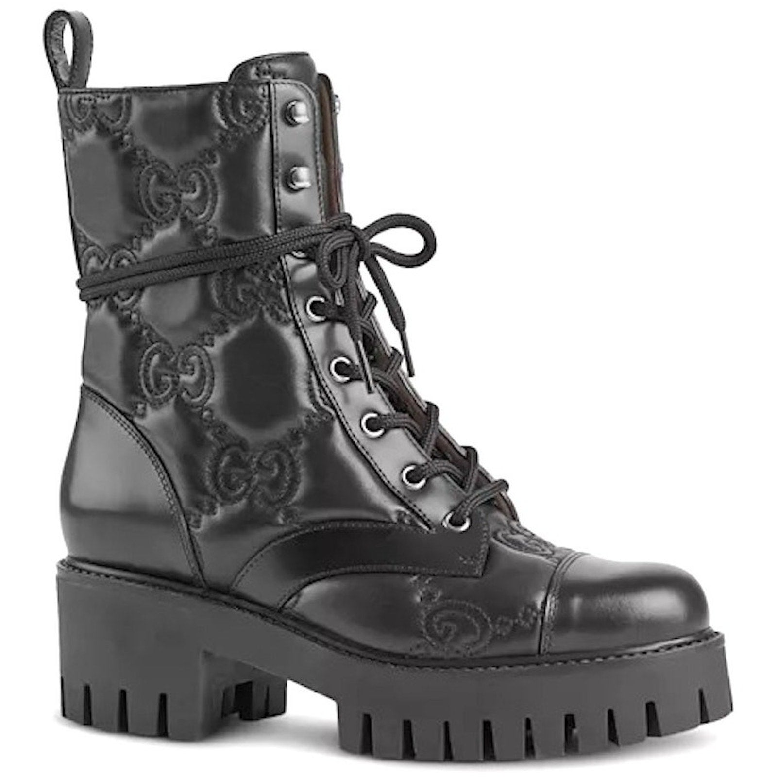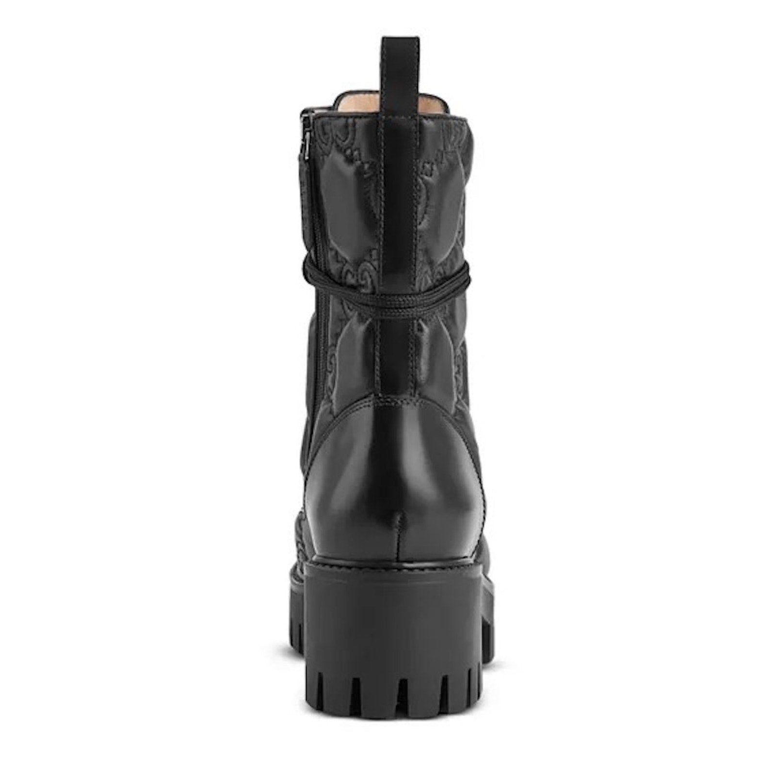 Gucci Women's GG Matelassé Leather Quilted Platform Combat Boots Black