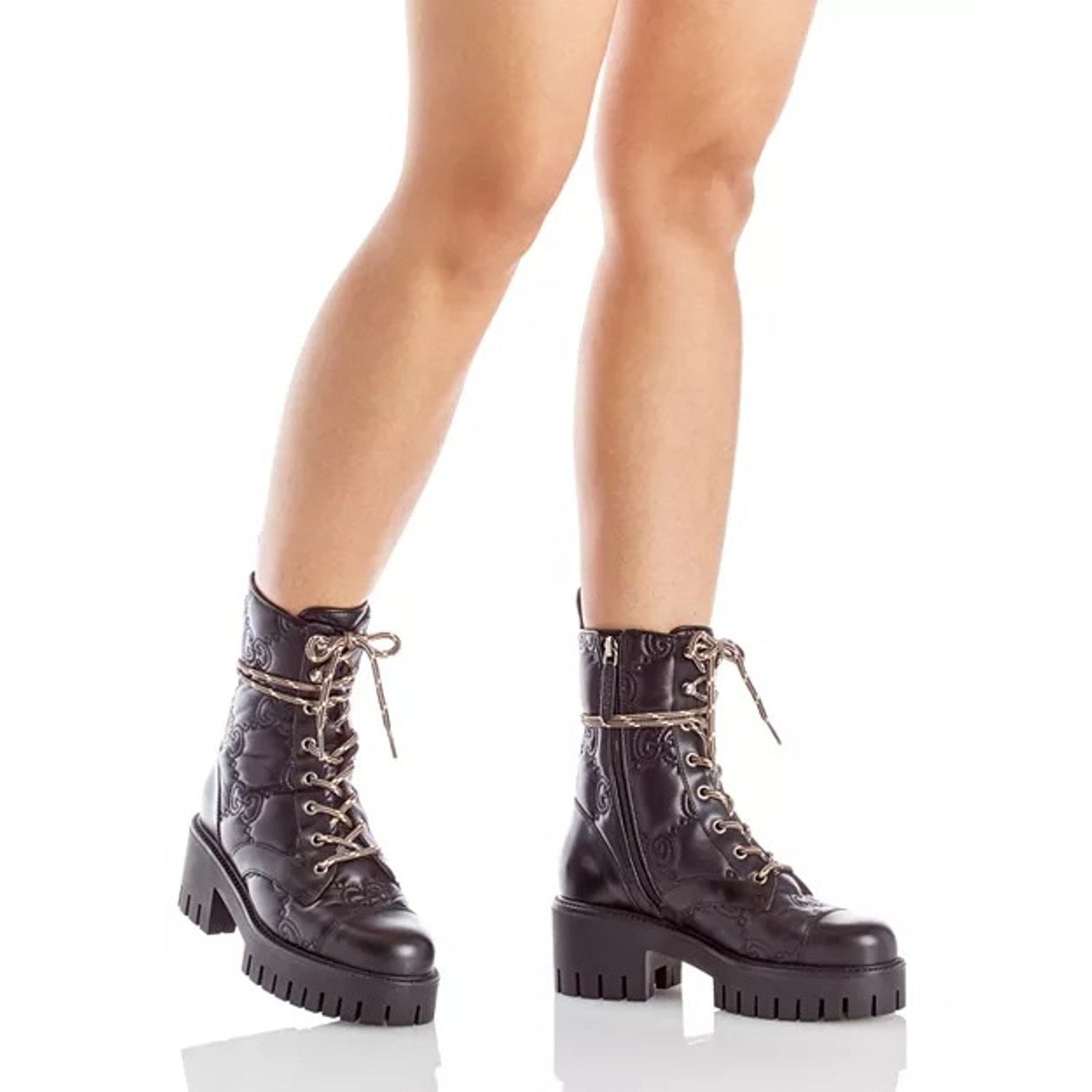 Elevate your footwear collection with these exquisite boots, crafted from premium matelassé leather. Featuring iconic GG detailing and a timeless lace-up design, these boots offer both sophistication and durability. Perfect for any occasion, they seamlessly blend luxury and practicality, making them a must-have for every fashion-forward woman. Step out in style and confidence with the ultimate statement piece from