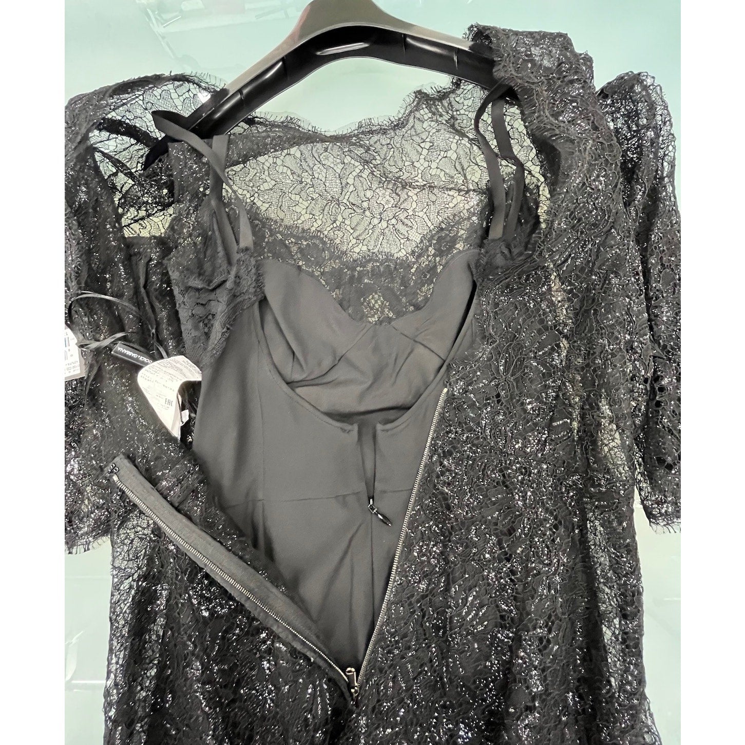 NWT Dolce & Gabbana Black Metallic Corded Lace Flared Low Back Dress IT 40 US S