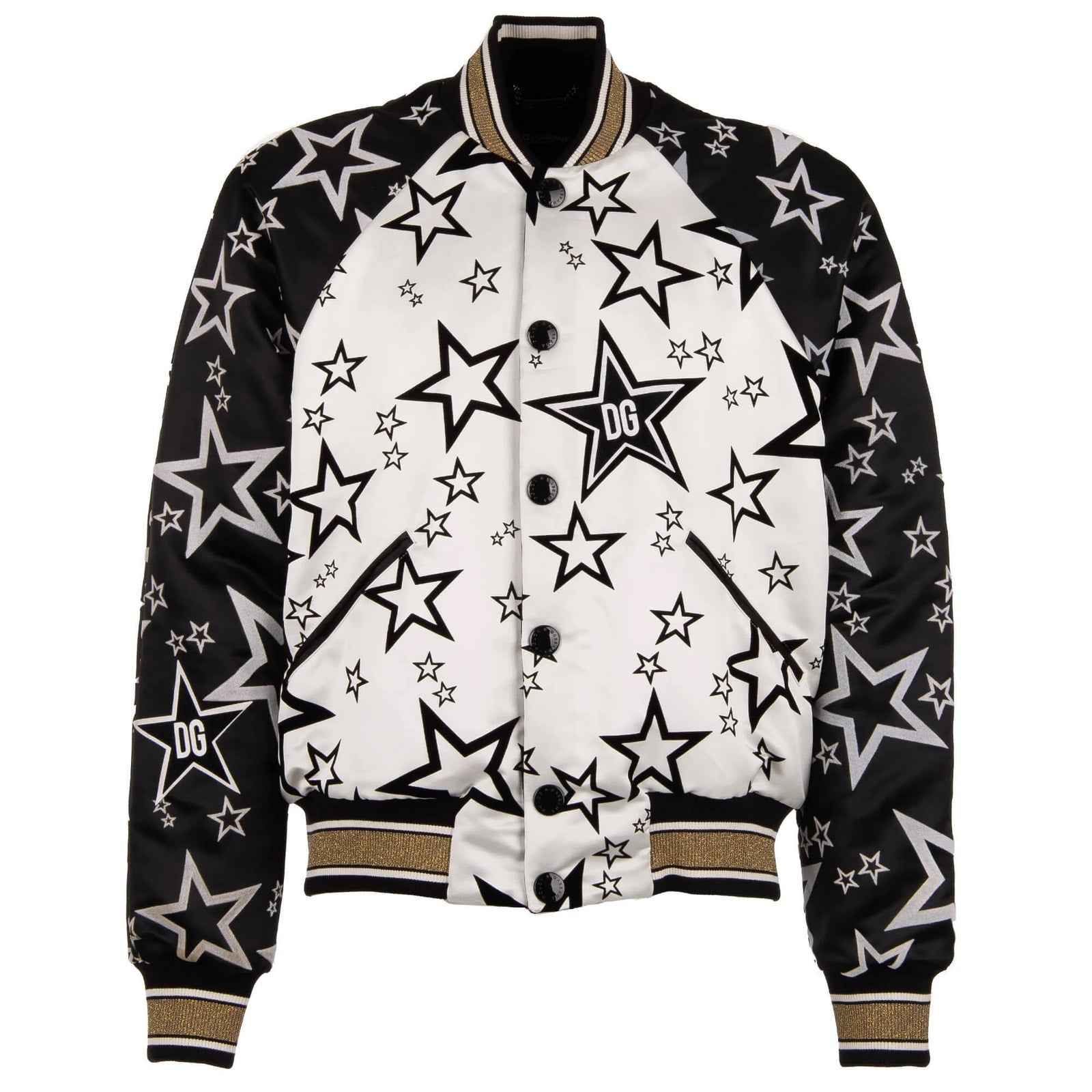 NWT Dolce & Gabbana Black White Stars Print reversible Bomber Jacket IT 42 US M