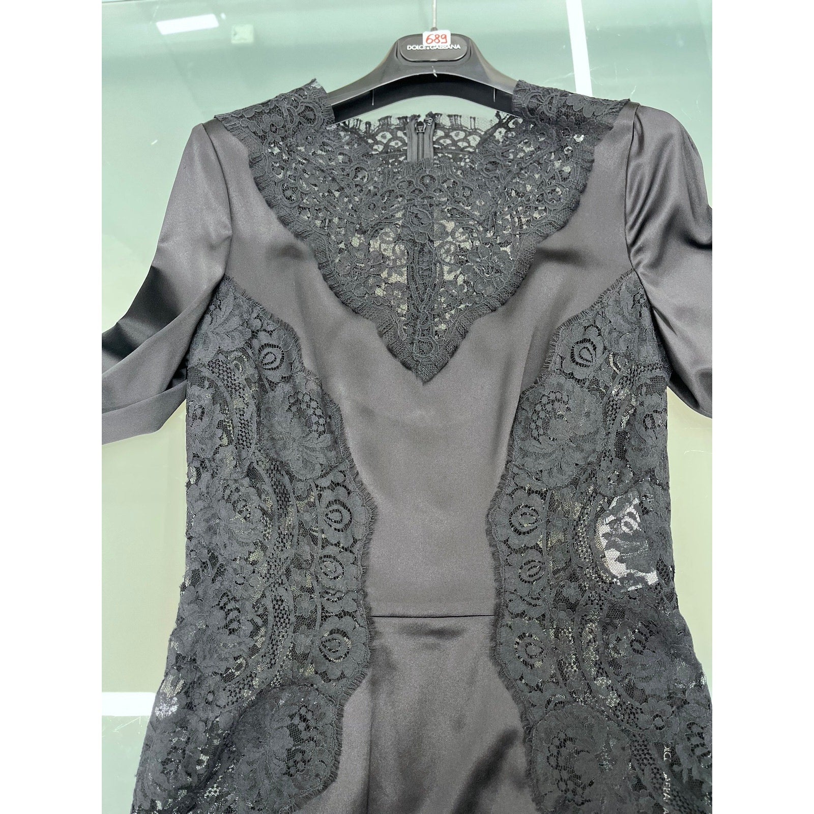 NWT Dolce & Gabbana Chantilly Lace Silk Satin Midi Dress Black IT 40 US S
