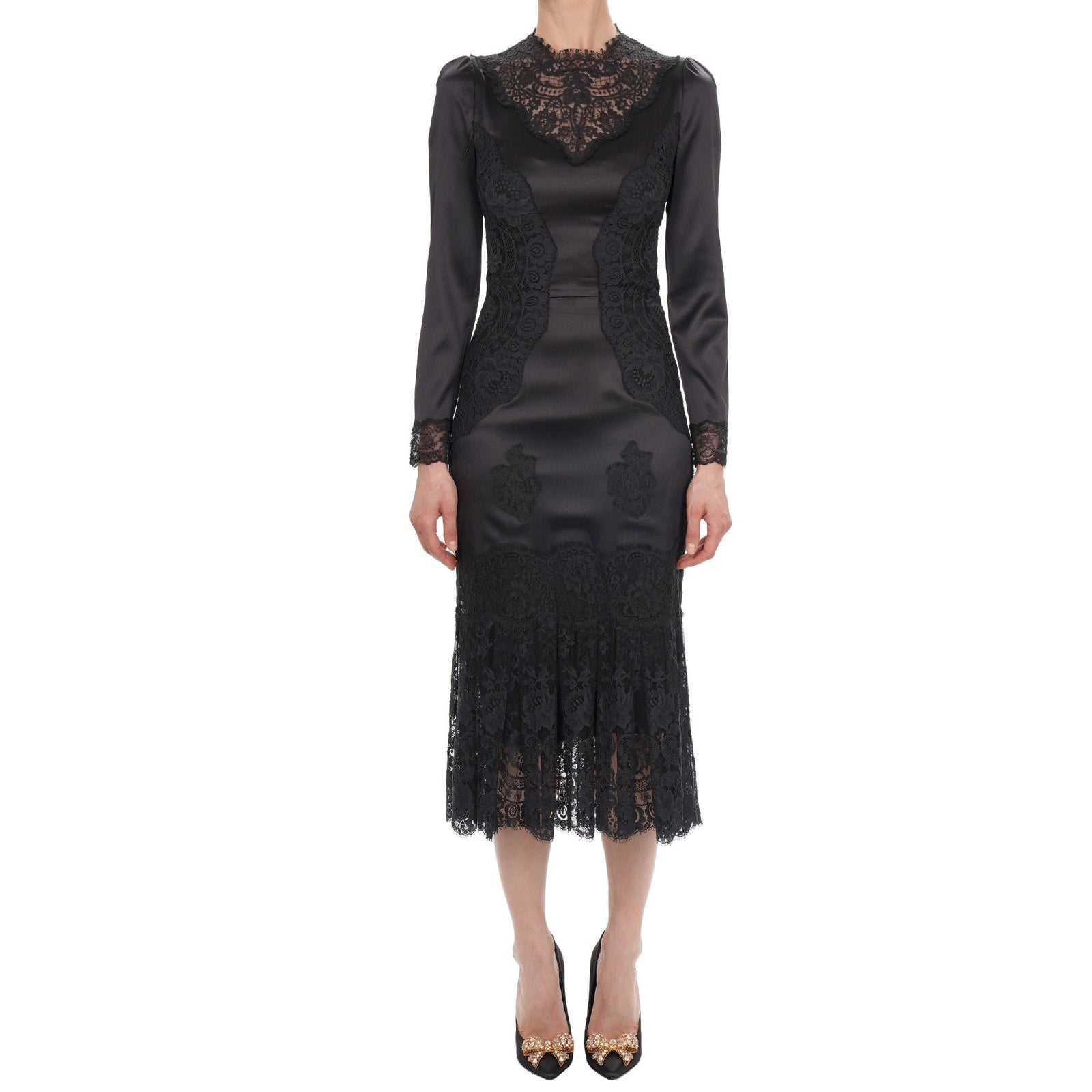 Dolce & Gabbana Chantilly Lace Silk Satin Midi Dress