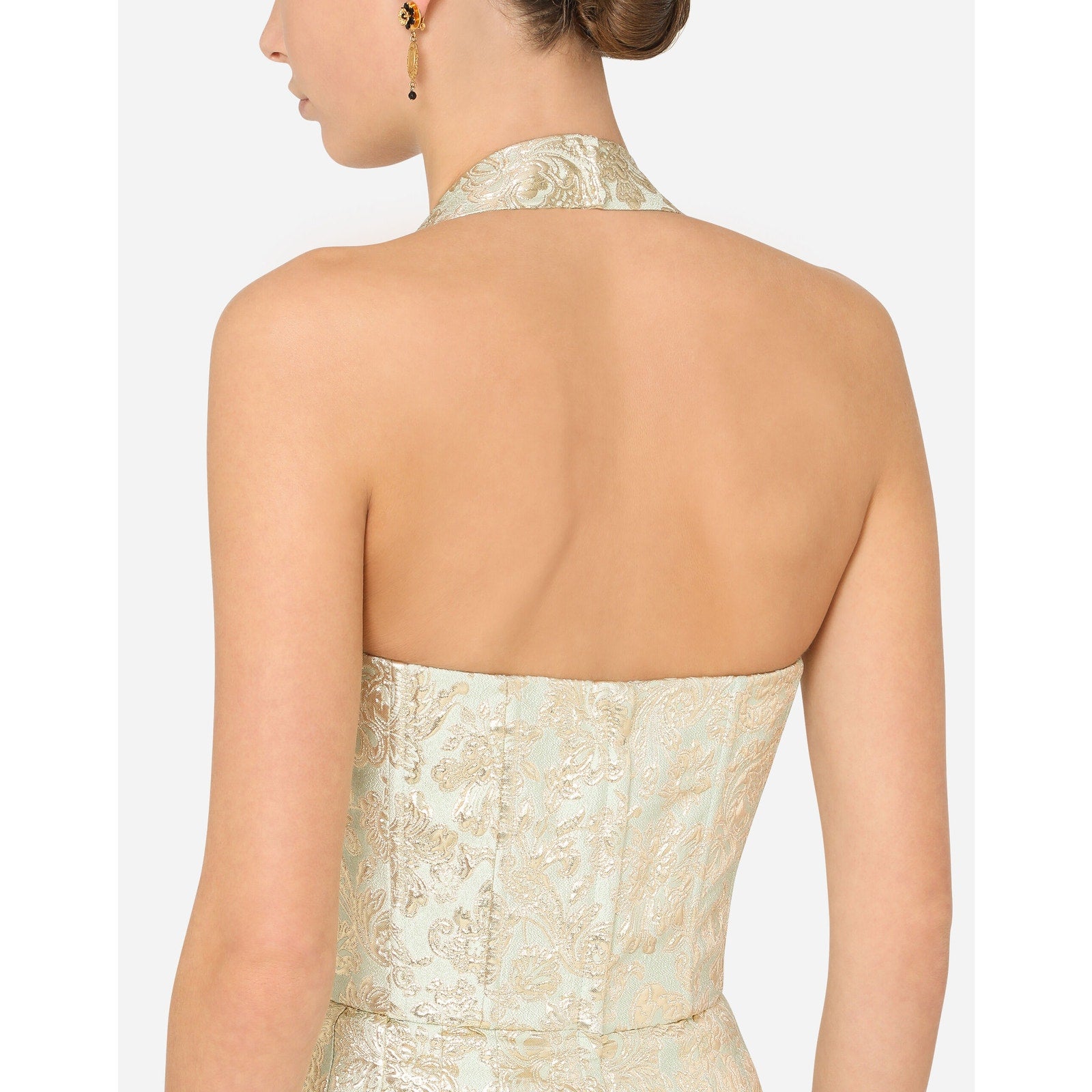 NWT DOLCE & GABBANA Gold Bustier Midi Pleated Dress Lame Jacquard 40 S