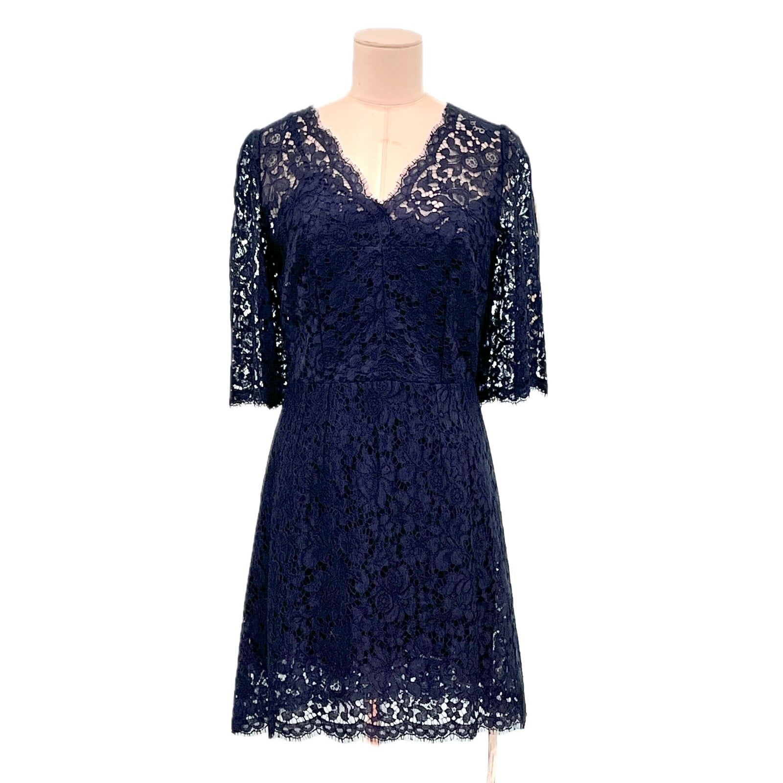 NWT Dolce & Gabbana Navy Corded Lace Short Sleeve Mini Dress 42 M