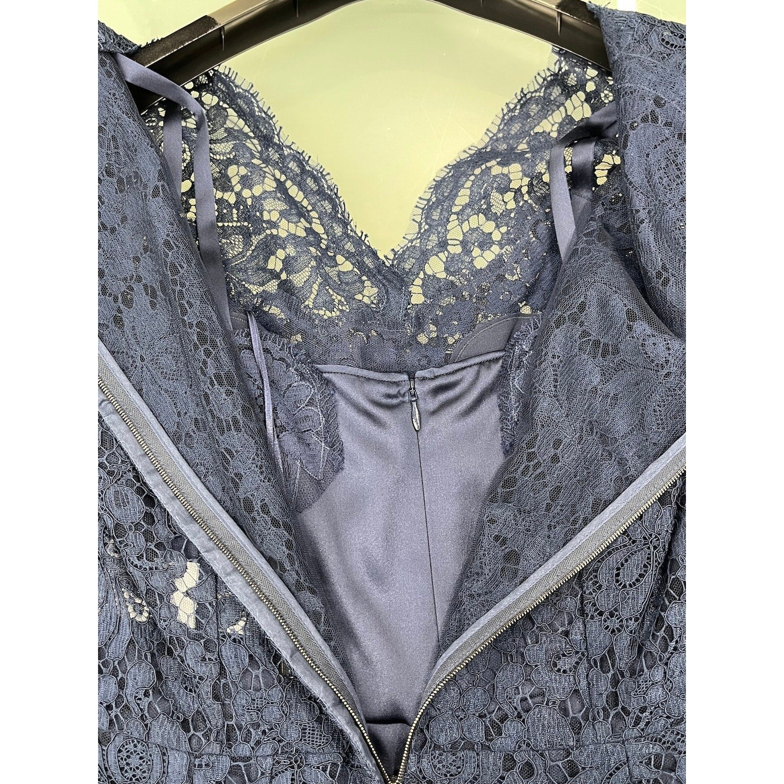You'll love this Dolce & Gabbana corded lace mini dress! It's a beautiful and elegant piece perfect for any special occasion. The navy blue color is stunning, and the corded lace detailing adds a touch of sophistication.