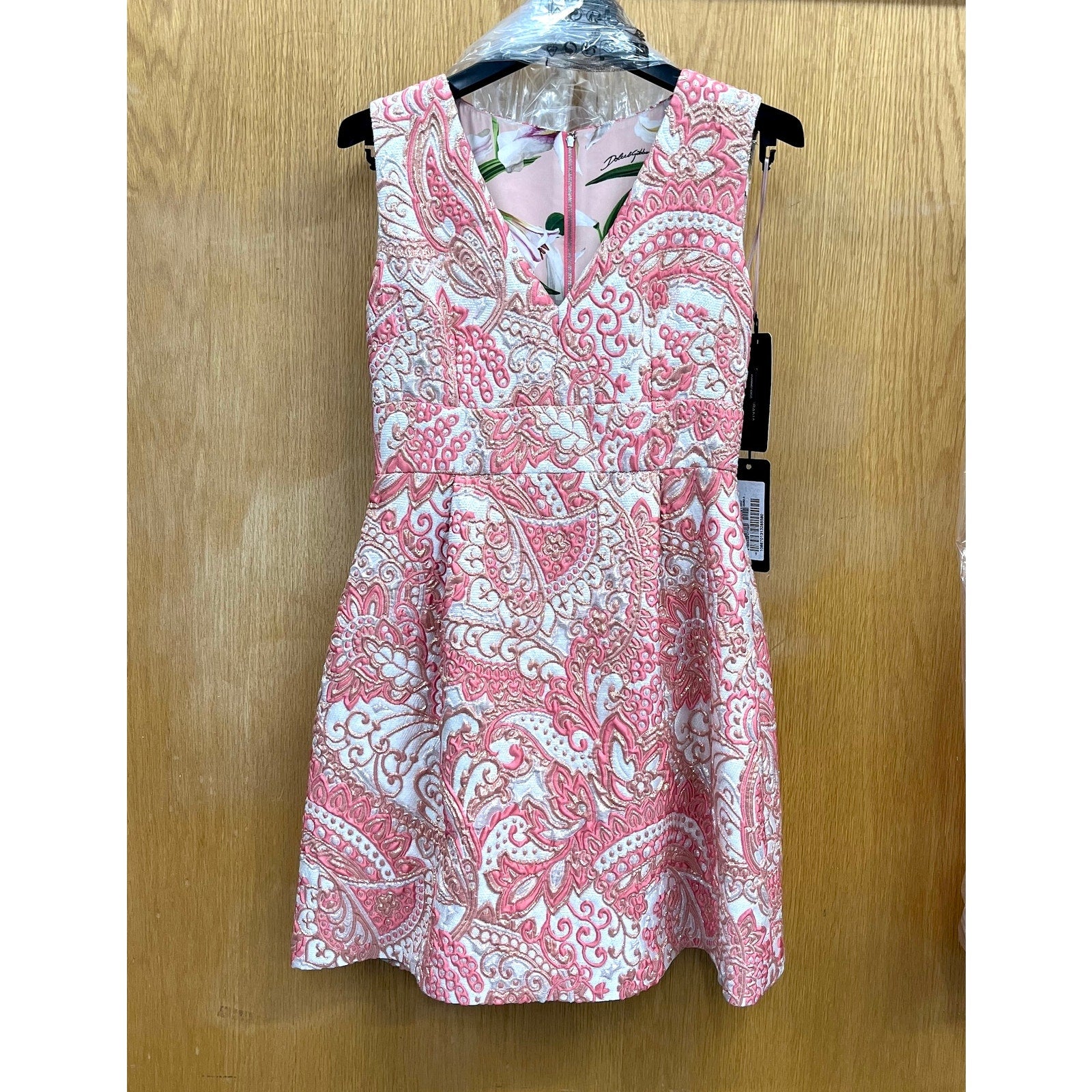 NWT Dolce & Gabbana Pink Floral Jacquard Pleated Sheath Mini Dress IT 42 M