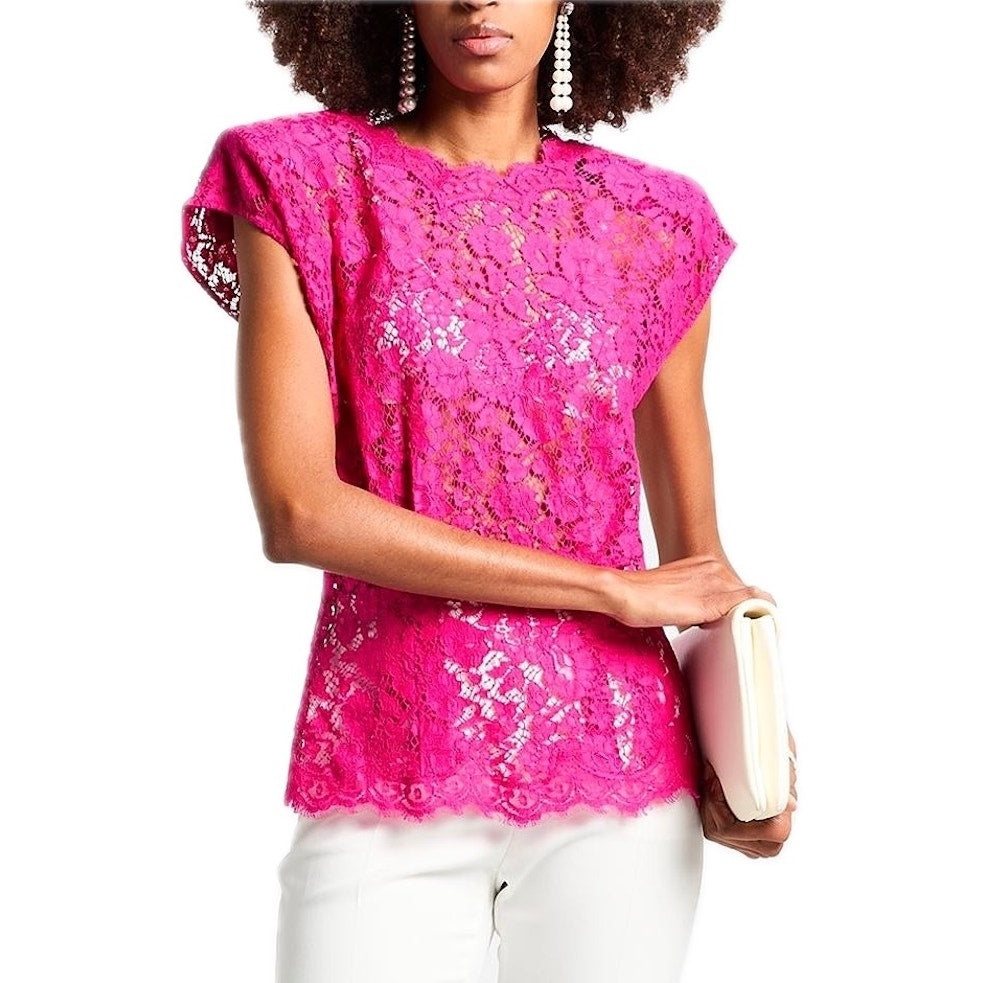Indulge in the exquisite craftsmanship of this Dolce & Gabbana pink lace top. Perfect for adding a touch of feminine elegance to your wardrobe, this stunning piece is brand new with tags and ready to turn heads. Don't miss the opportunity to own a luxurious piece of Italian fashion.