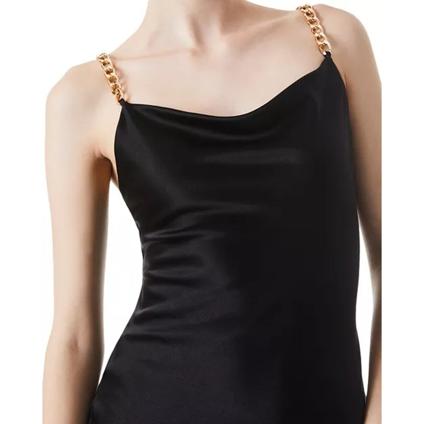 Alice + Olivia Harmony Chain Drapey Mini Slip Dress Black Gold