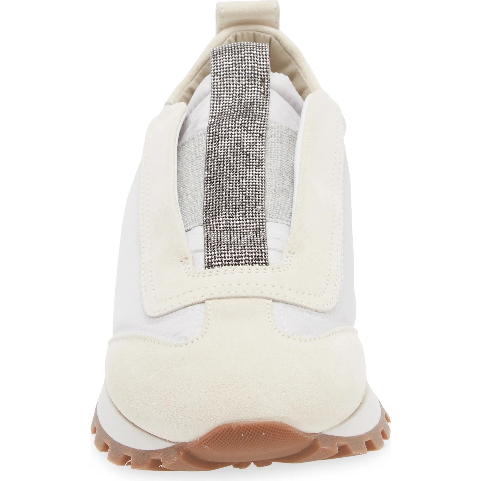 Brunello Cucinelli monili-embellished Suede Techno Fabric slip-on sneakers White