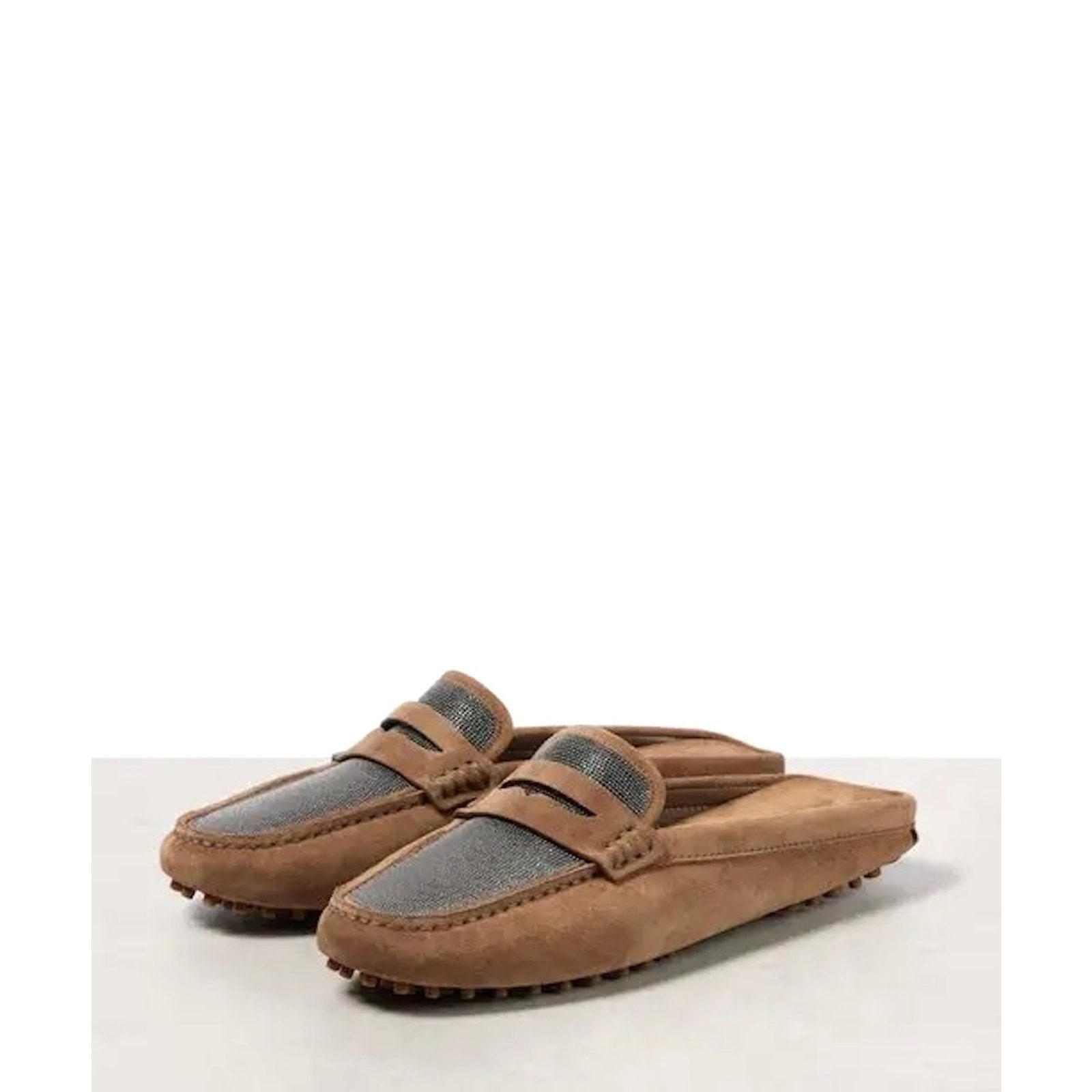 Brunello Cucinelli Monili Suede Driving Mules Brown