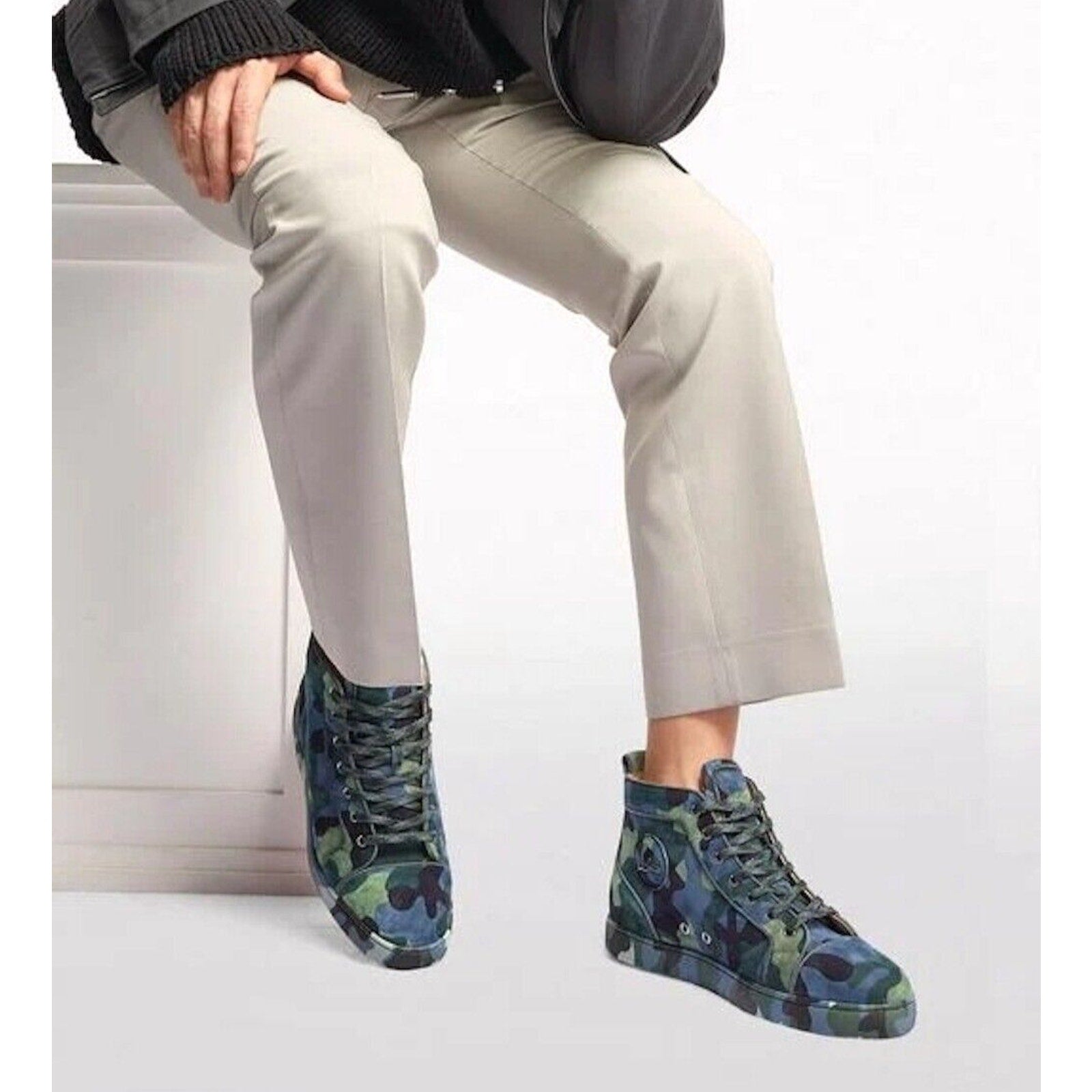 * Christian Louboutin "Louis" High-top sneakers Camouflage Printed Suede