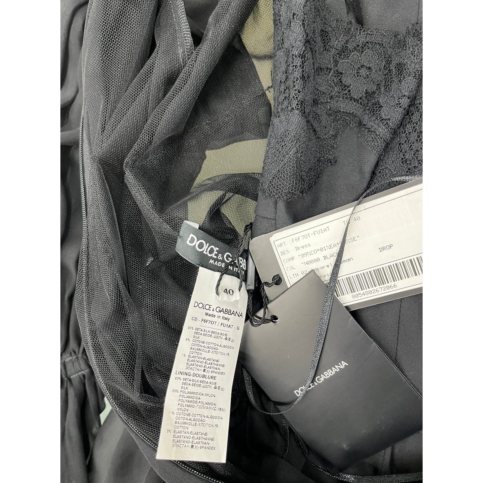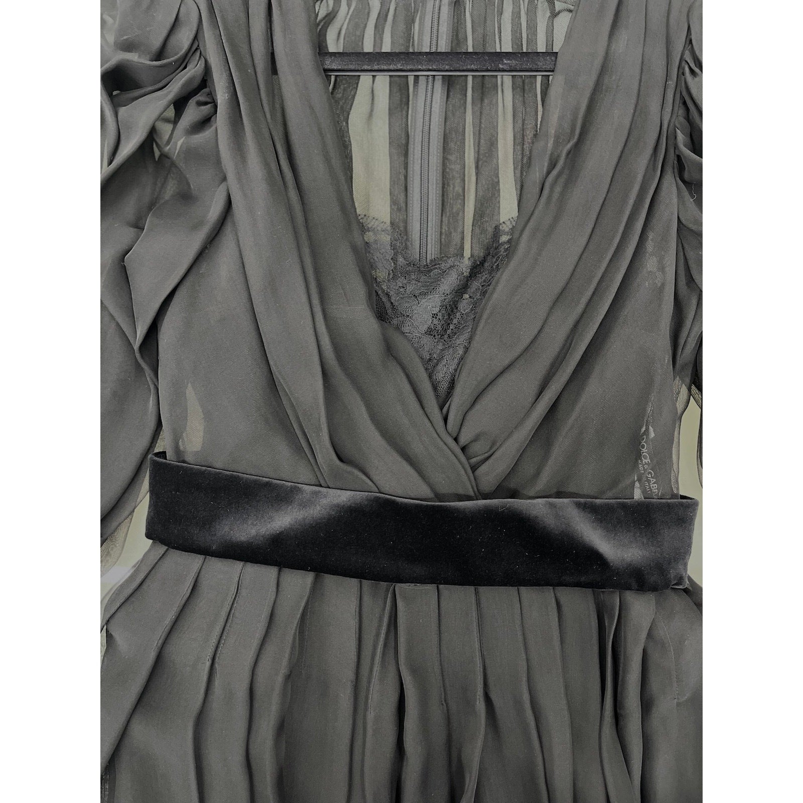 DOLCE & GABBANA Black Gathered silk-blend chiffon Mini Dress 40 S