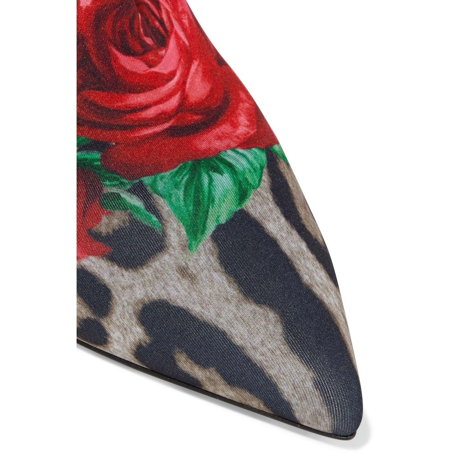 Dolce & Gabbana Floral Leopard Rose Print Stretch booties boots Tan Red 35.5