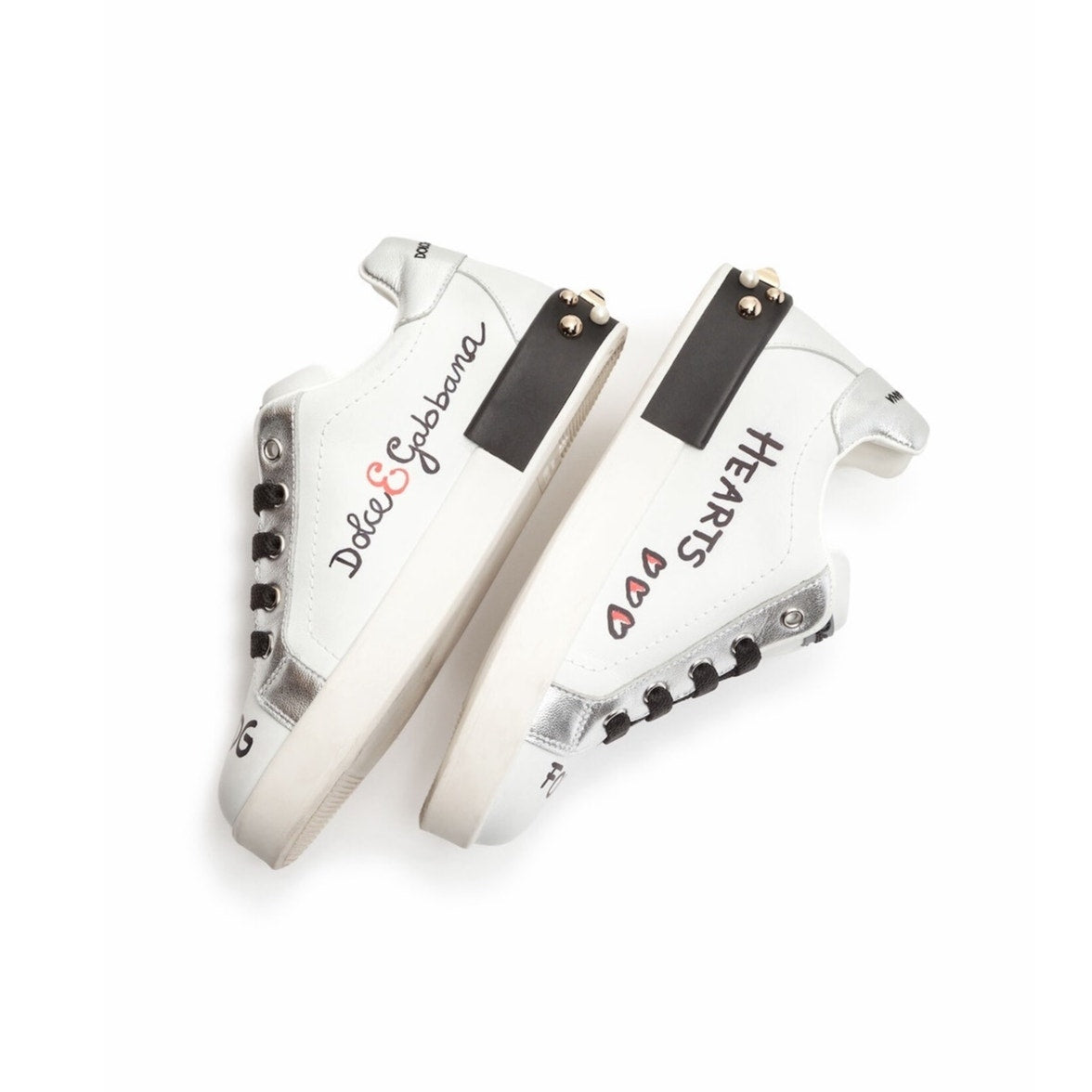 Dolce & Gabbana Portofino Leather Sneakers Geranium studs