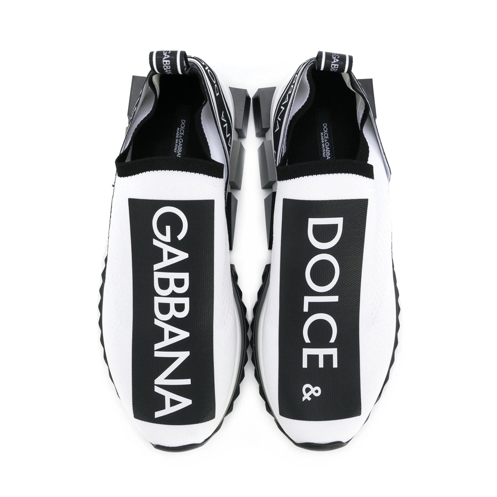 Dolce & Gabbana Sorrento Logo Print Stretch Knit Slip-On Sneakers White Black