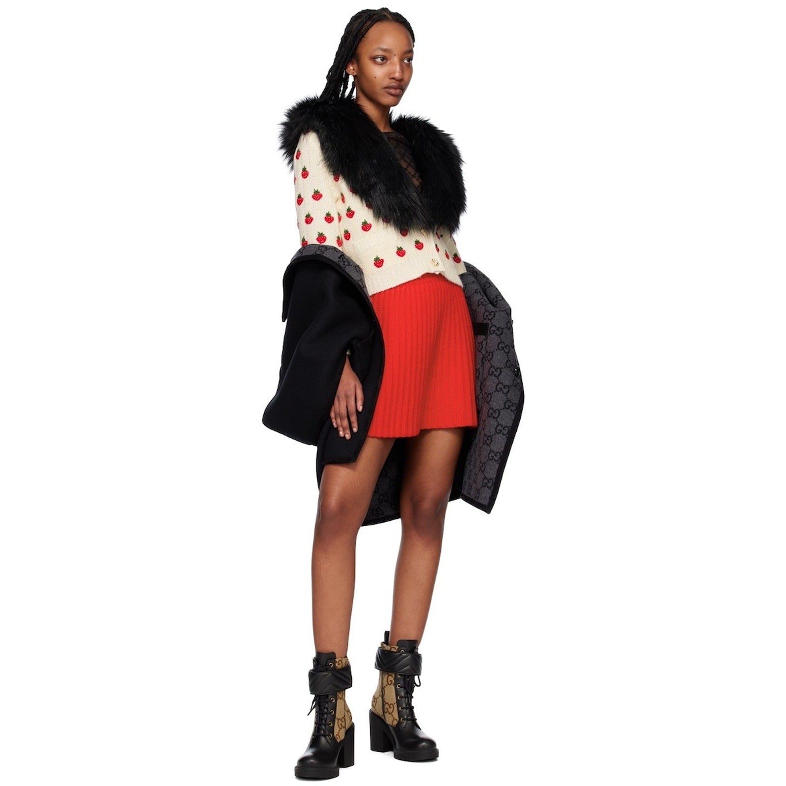 Gucci Beige & Black GG Marmont Ankle Boots