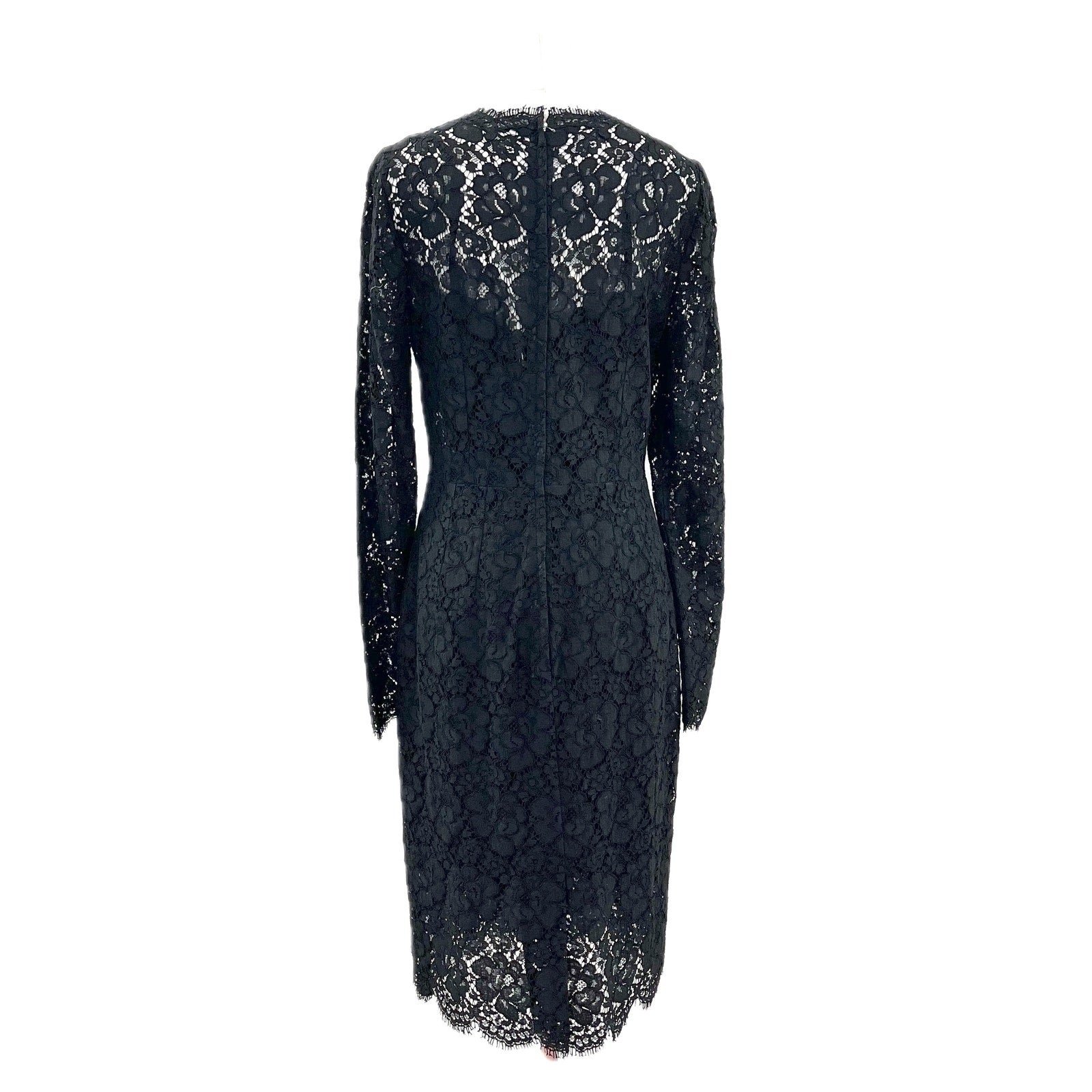 NWT Dolce & Gabbana Black Corded Lace Long Sleeve Midi Dress 46 XL