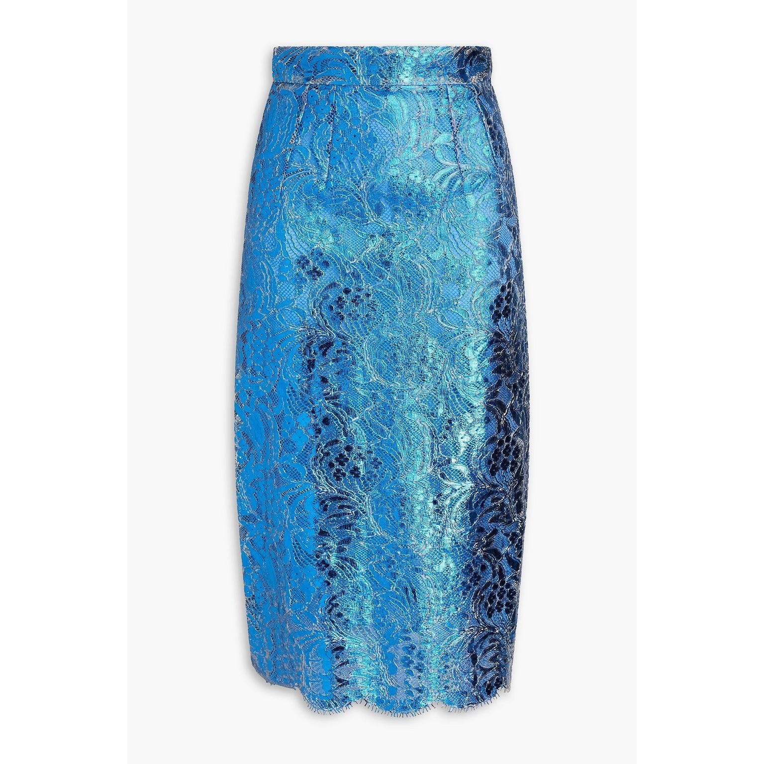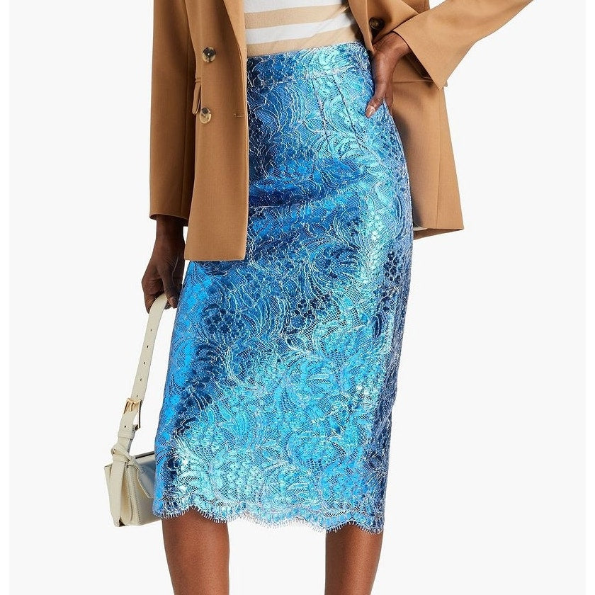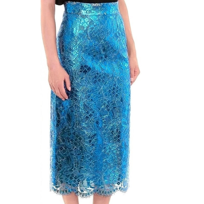 NWT Dolce & Gabbana Blue Metallic Coated Lace Pencil Skirt IT 38 US XS