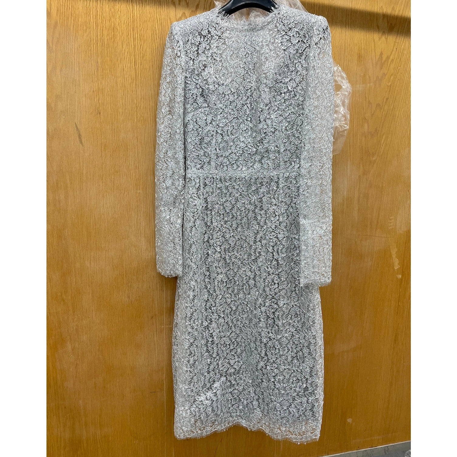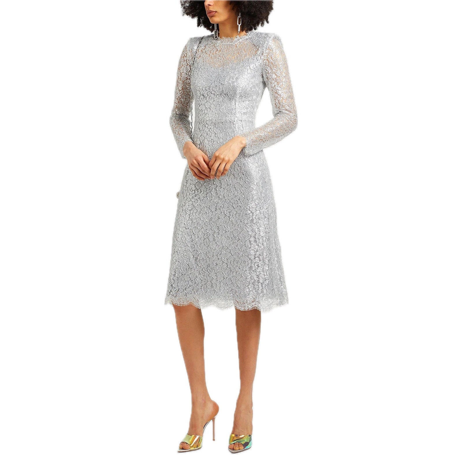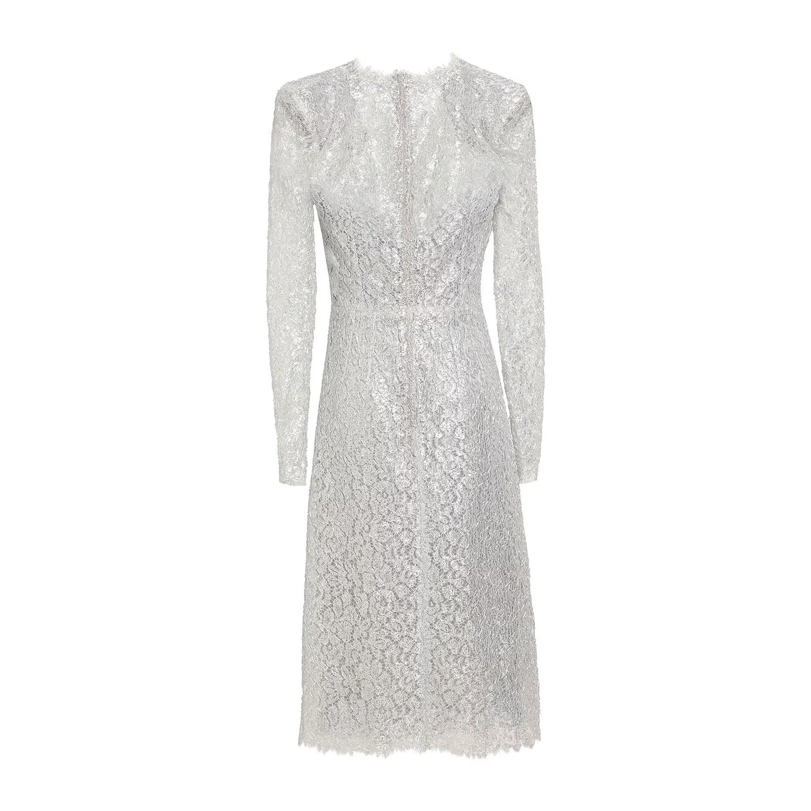 NWT DOLCE & GABBANA Cordonetto Lace Midi Dress Long Sleeves Silver 40 S