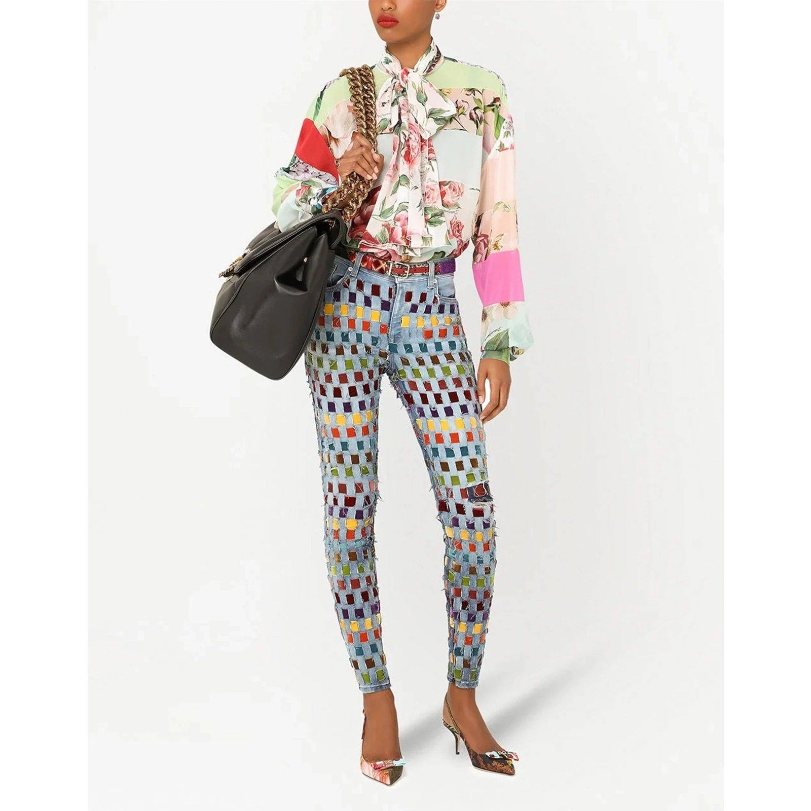 Dolce & Gabbana Multicolor Floral Patchwork Ascot Collar Top