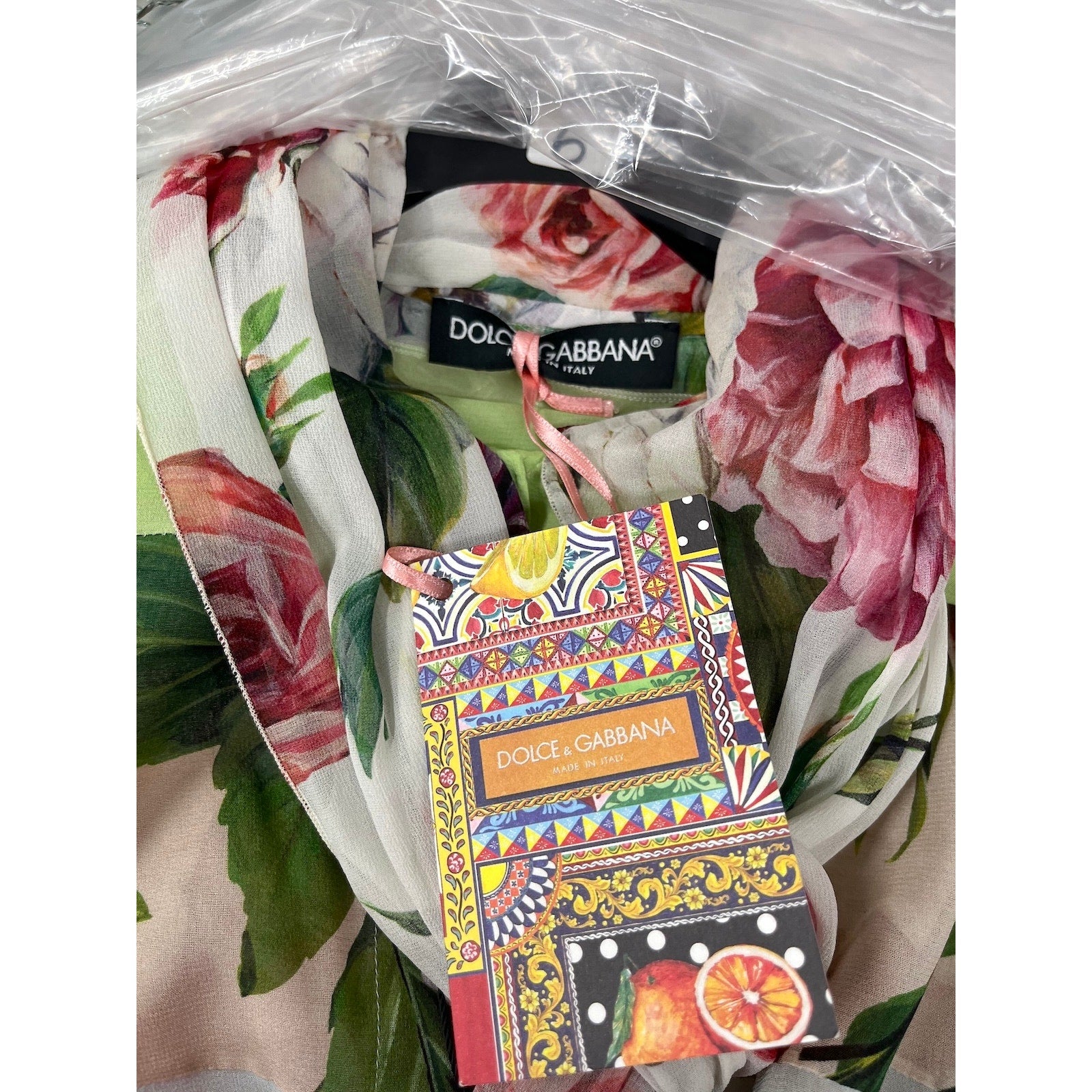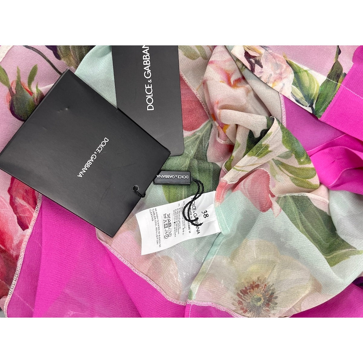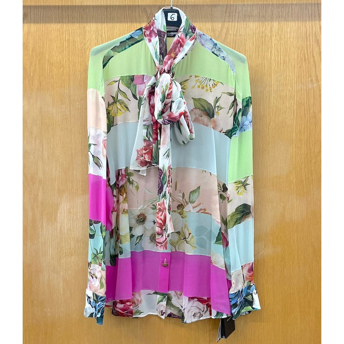 NWT Dolce & Gabbana Floral Patchwork Blouse Tie Collar Silk Shirt Pink IT 38 XS