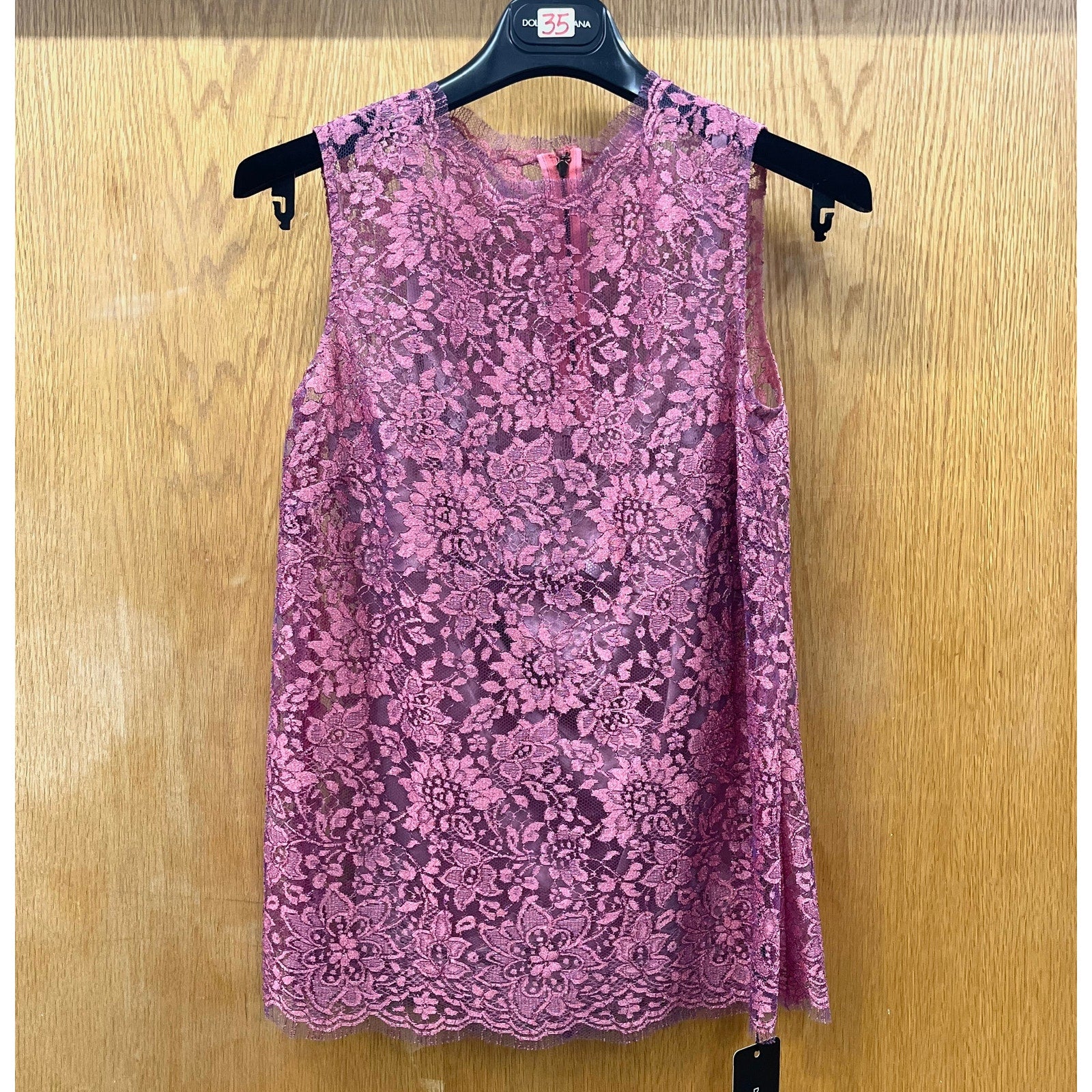 NWT Dolce & Gabbana Pink Chantilly Lame Lace Sleeveless Tank Top Blouse IT 40 S