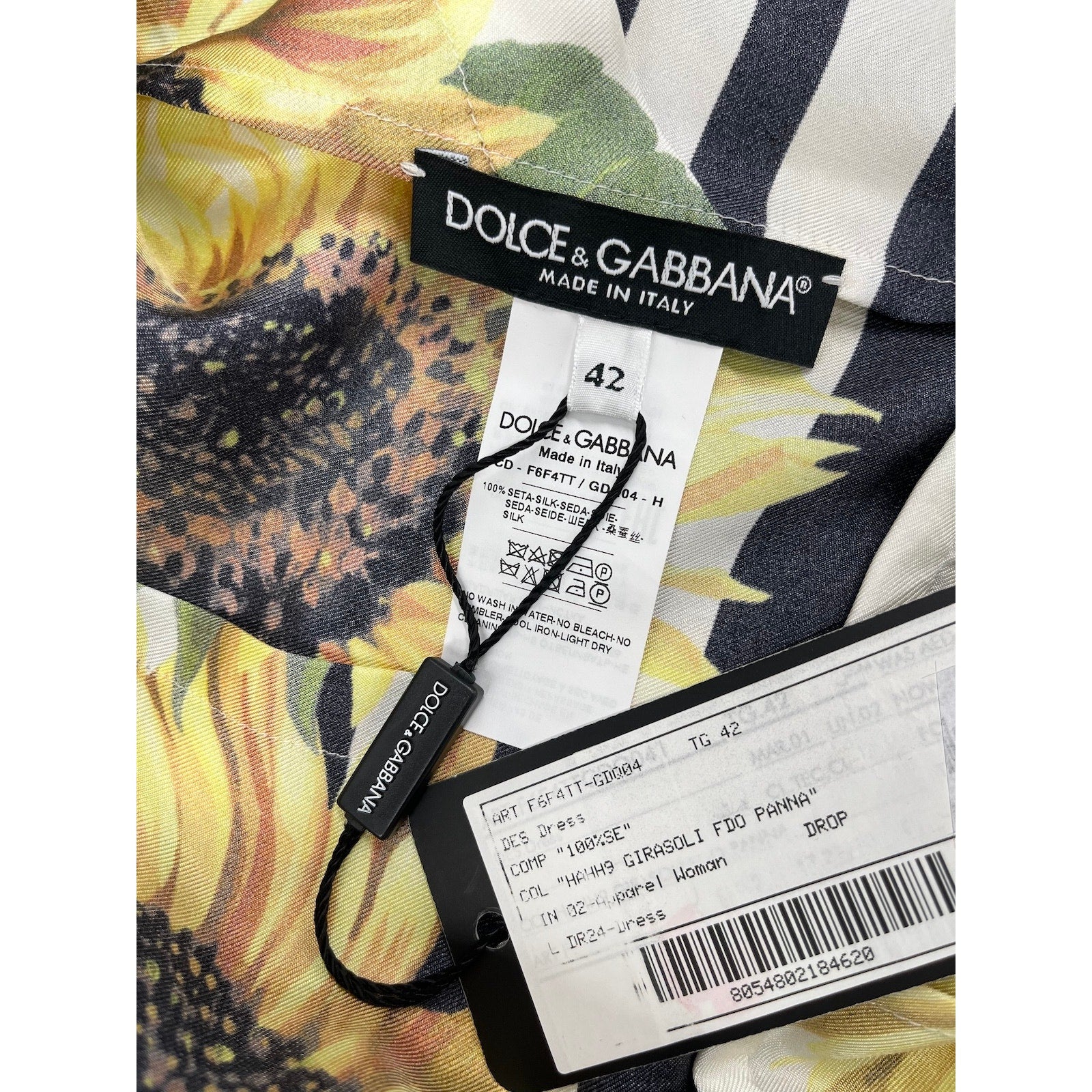 NWT Dolce & Gabbana Yellow Floral Print Silk Twill Midi Dress IT 40 S. This dress is brand new with tags, ensuring pristine condition and authenticity.