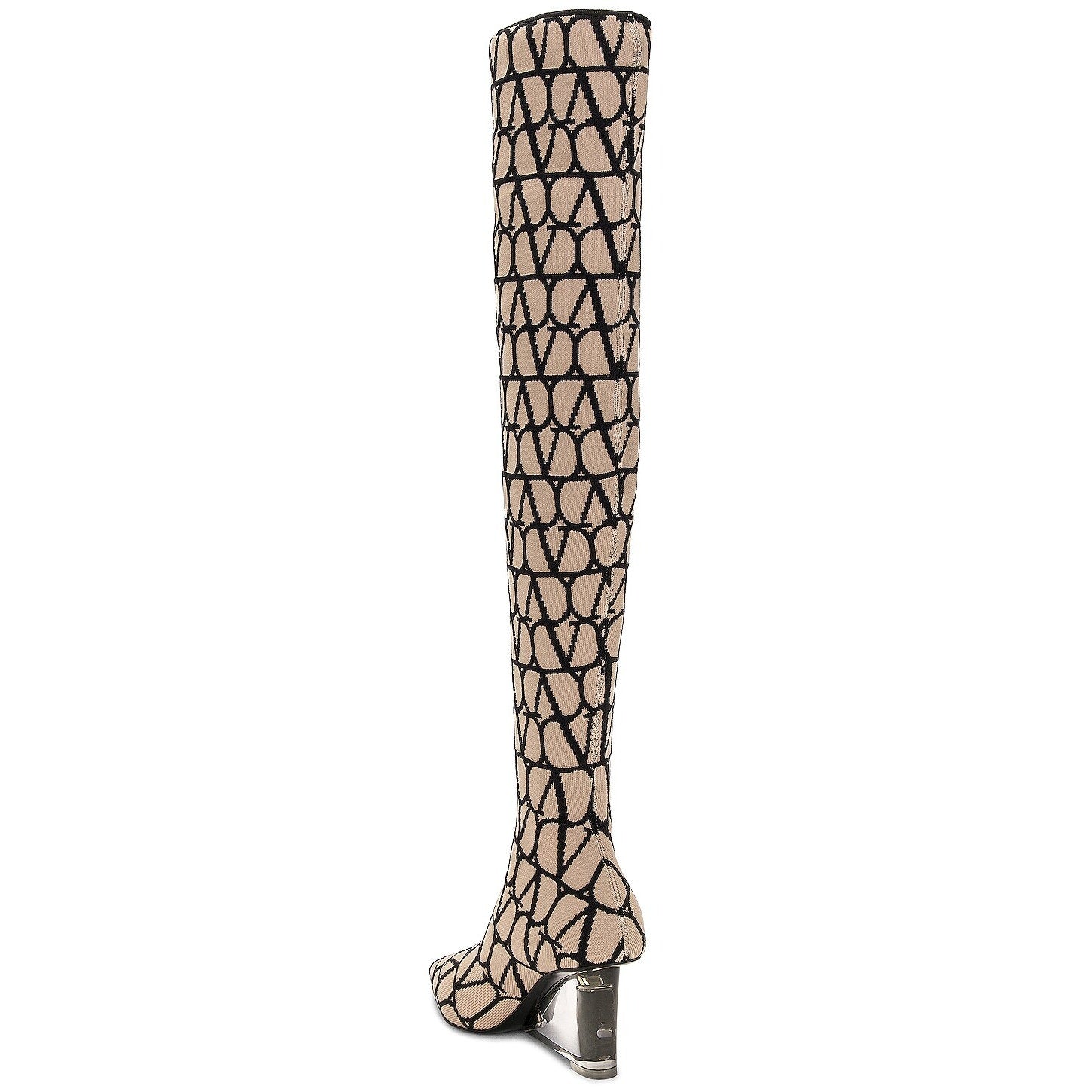 Valentino Garavani Iconographe Stretch Knit Over The Knee Boots Beige Black